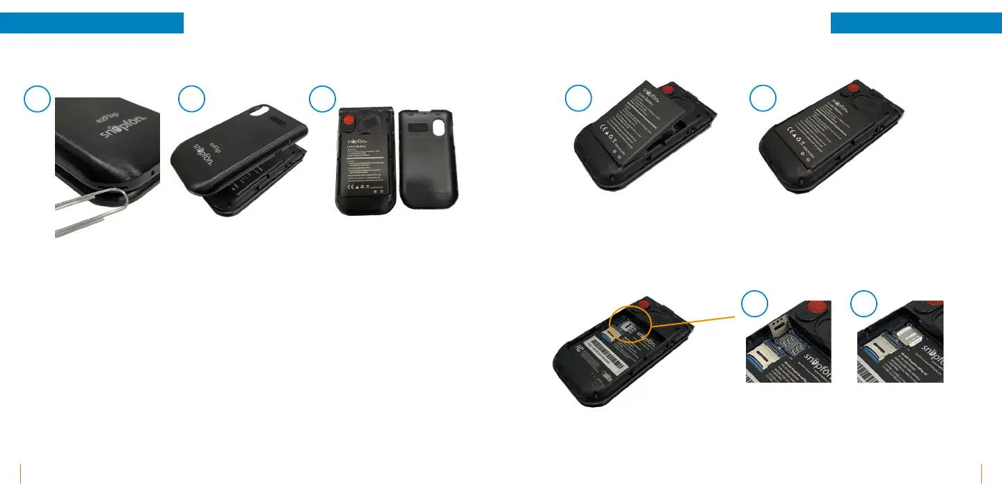 3. Once the back is removed you'll be able to access the Battery, SIM Slot, and MICRO SD slot.