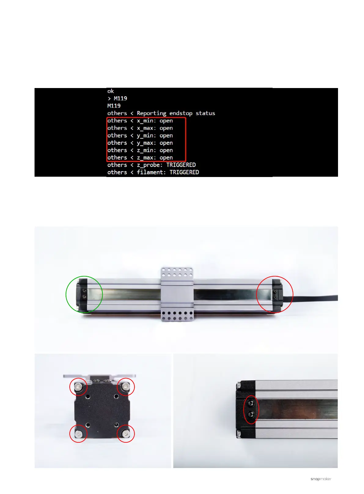 - If X_min or X_max is displayed as “TRIGGERED” (as opposed to “open”), then the end-stop switch of the X-axis