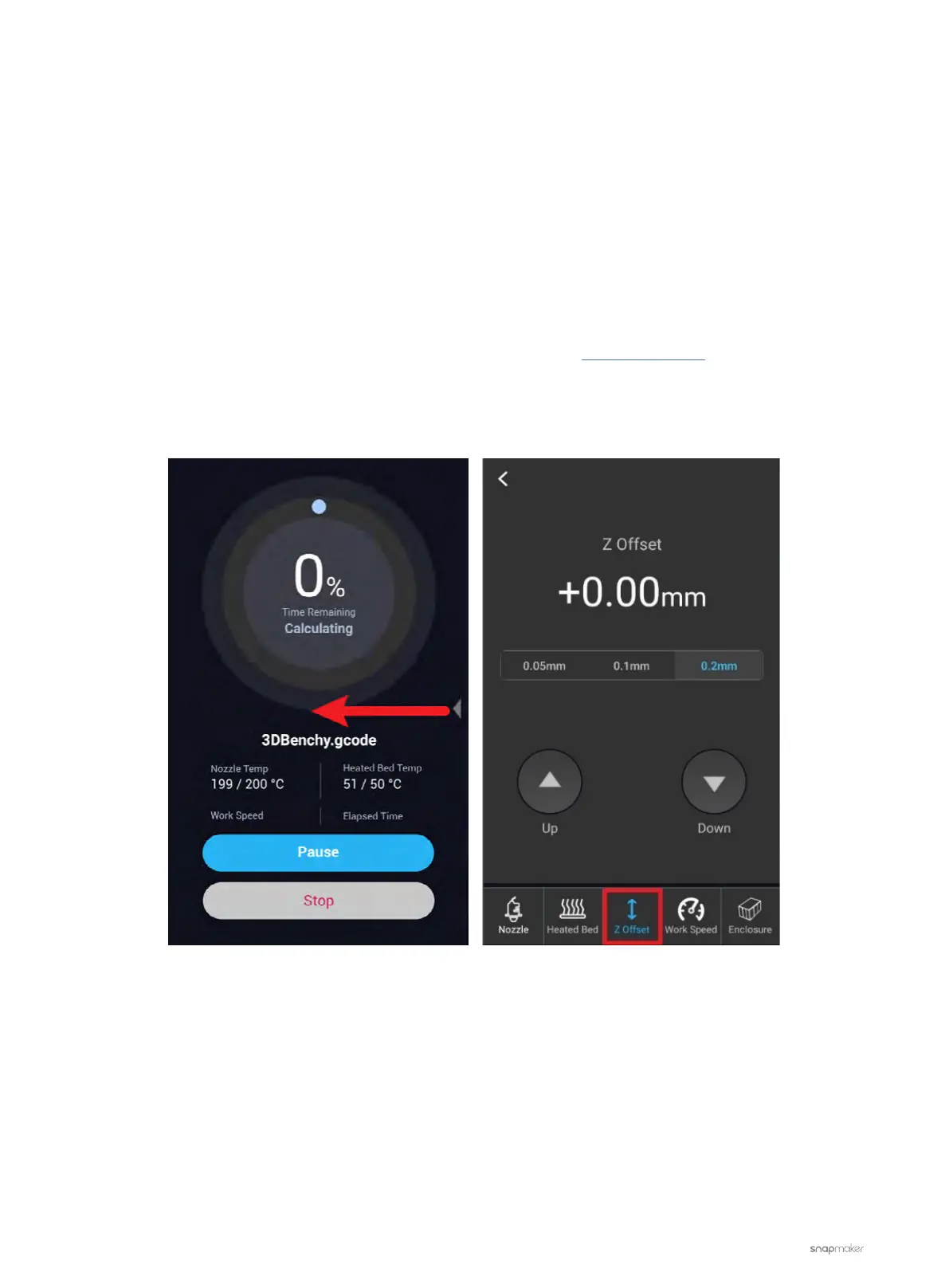 2. Start a new printing job. Swipe left on the Touchscreen to view the hidden menu and then tap Z Offset at the