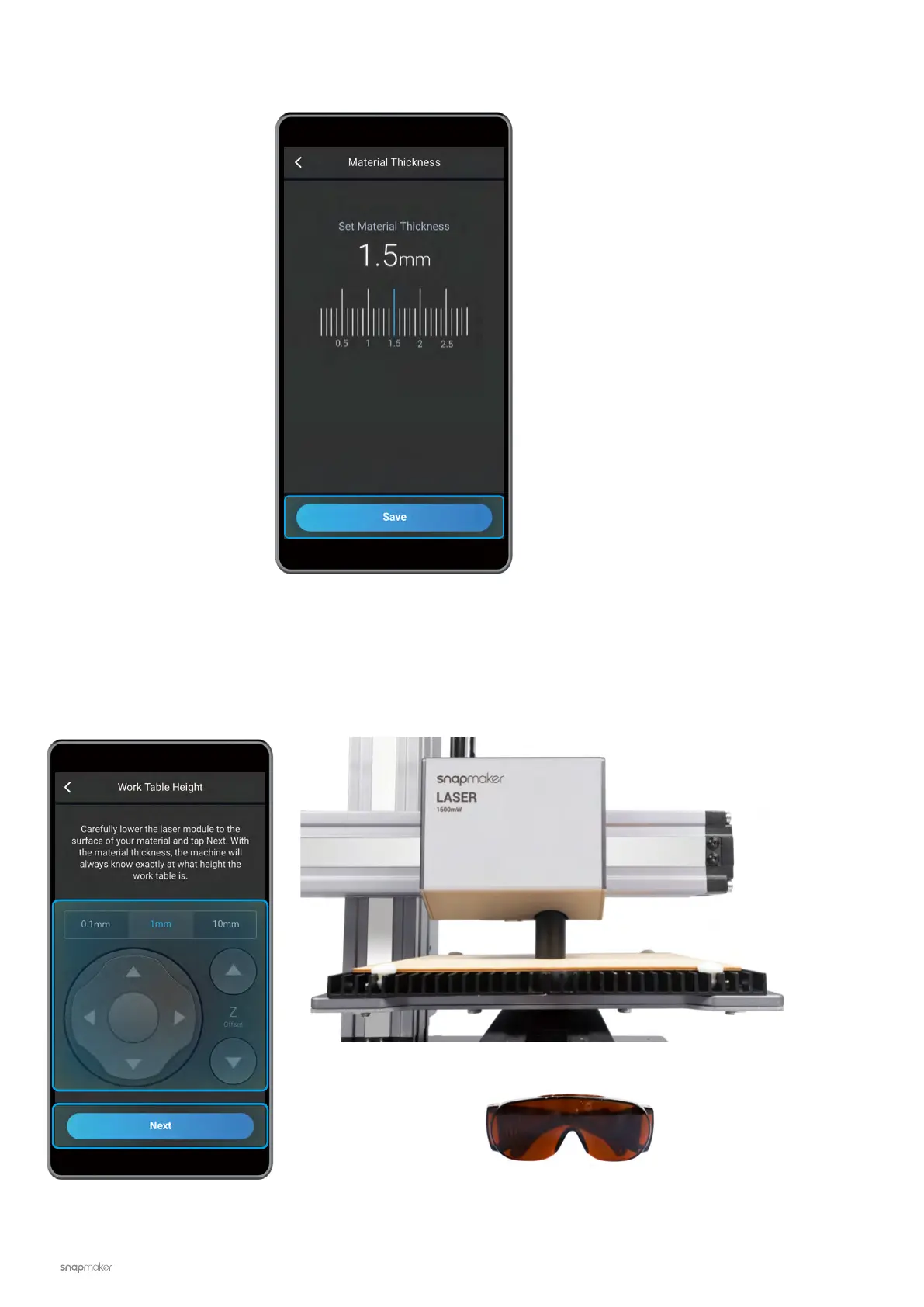 surface of the material, tap Next. Put on the Laser Safety Goggles before setting the Work Origin.