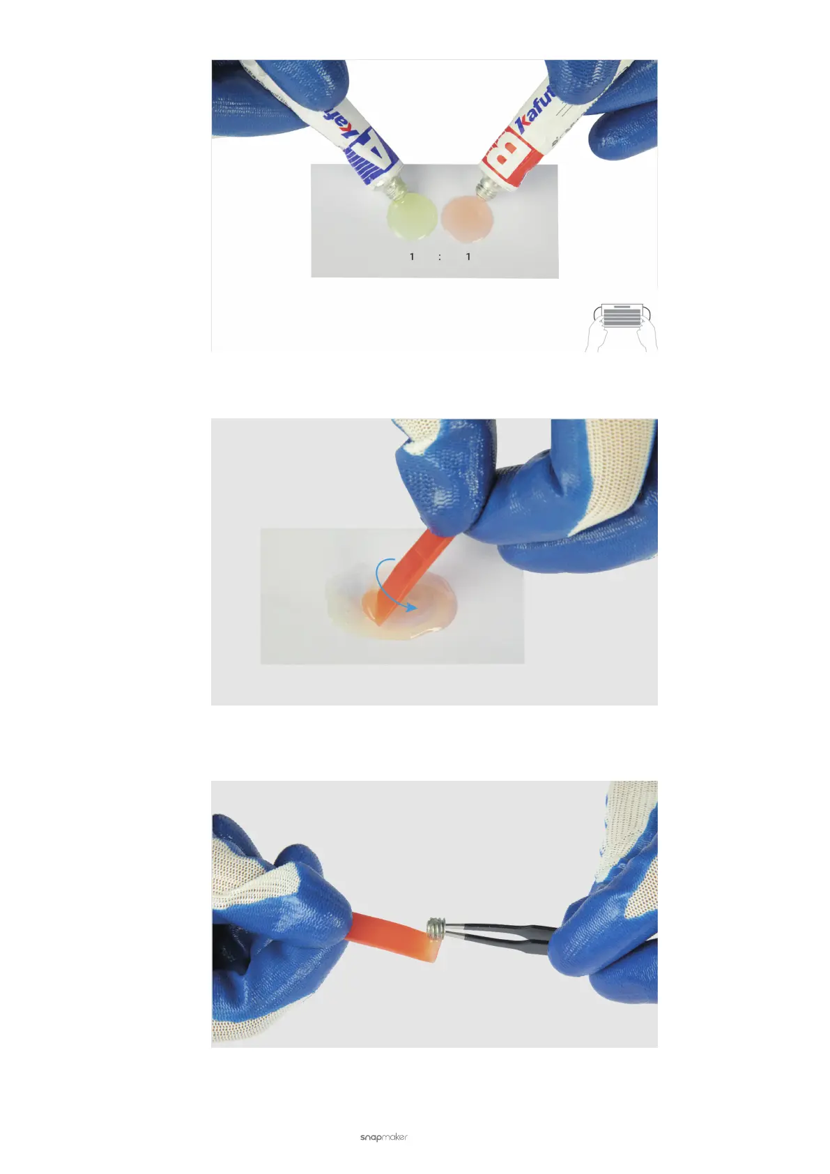 (3) Mix the A glue with the B glue using the red mixing stick, and stir them evenly.