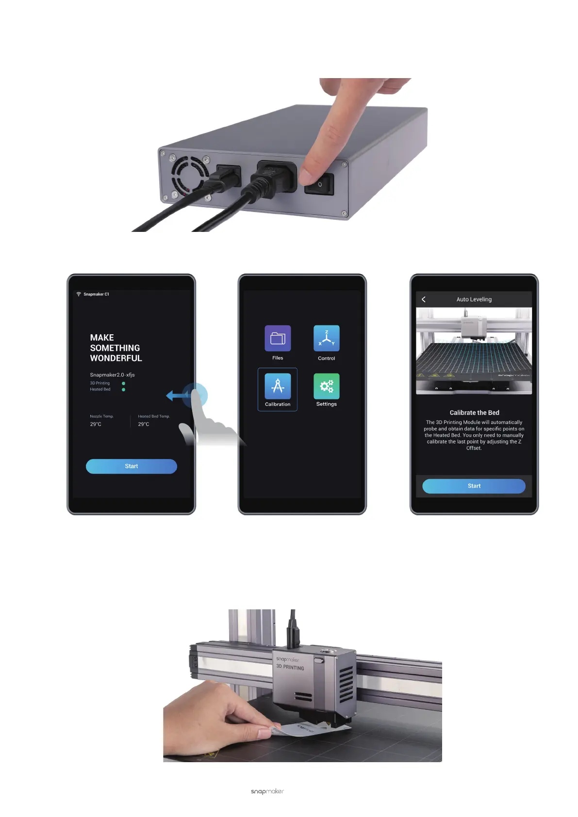 (3) Start calibrating. The 3D Printing Module has a built-in distance sensor measuring the distance between the