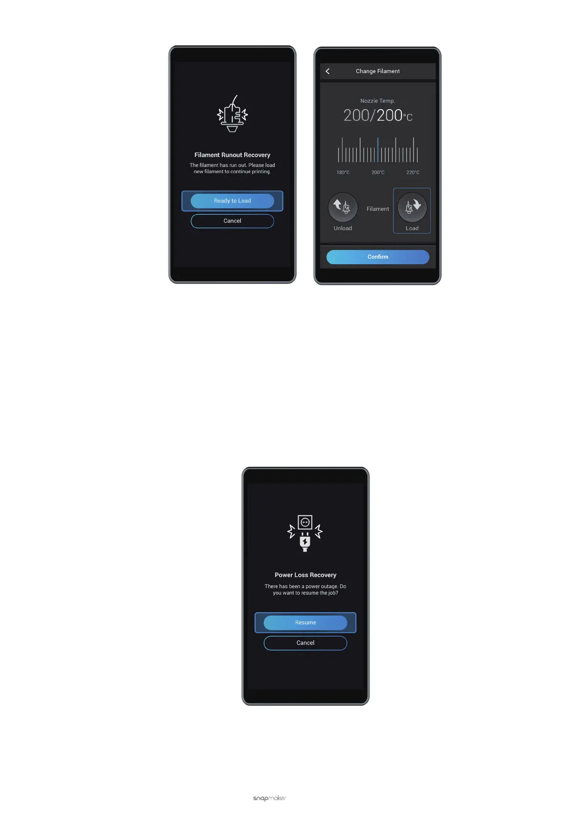(2) After the 3D printer is restarted, tap Resume on the Touchscreen.