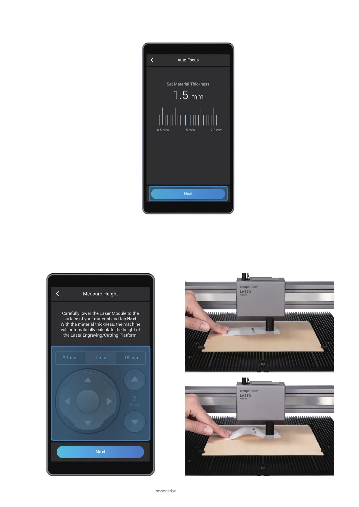 (5) Put the Calibration Card provided or a piece of A4 paper in between the Laser Module and the material. Tap