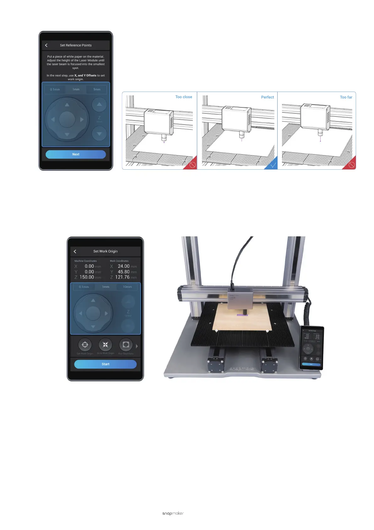 (9) Read the Manual Focus instruction on the Touchscreen. Tap Start, and the machine will keep adjusting the
