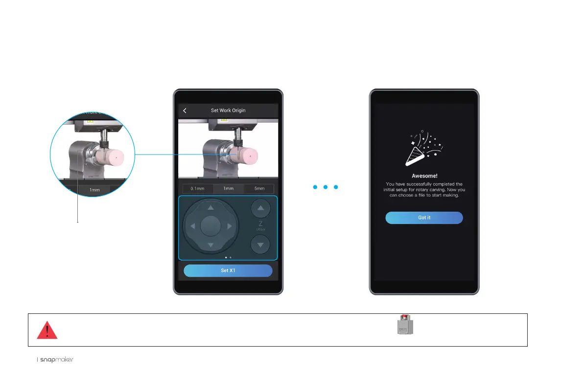 Read the instruction on Origin Assistant on the Touchscreen, and wear the CNC Safety Goggles. Follow onscreen instructions, and manipulate the