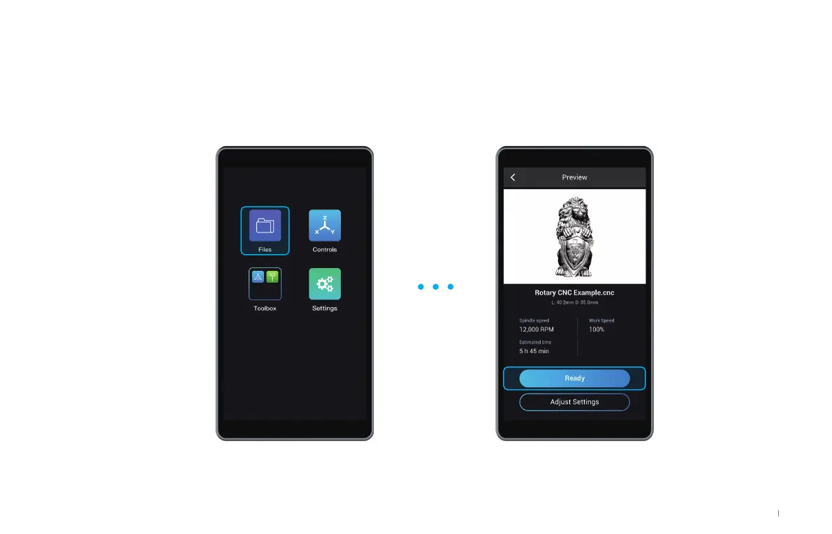 Insert your USB flash drive into the Controller. Tap Files, and select the G-code file in USB. Preview the file, and tap