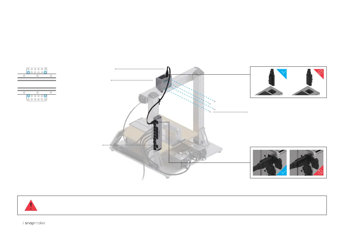 Turn off the machine before assembly. Do not connect or disconnect any cables when the machine is turned on.