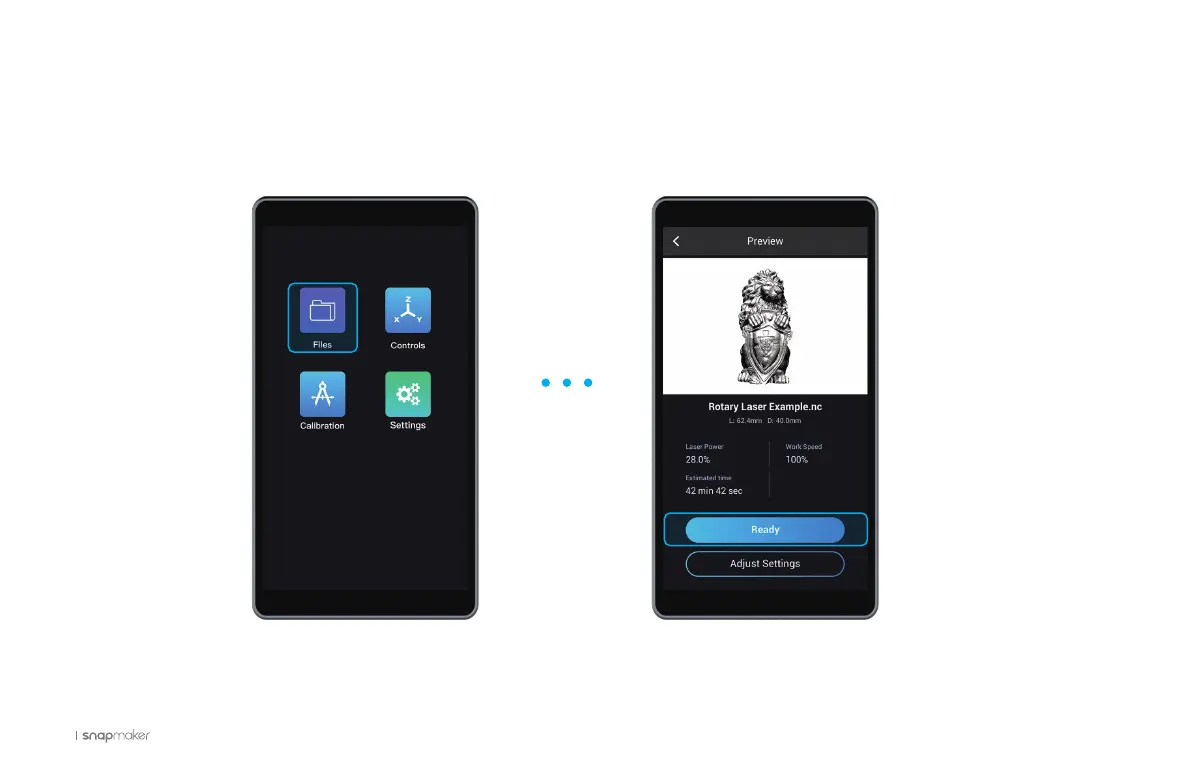 Insert your USB flash drive into the Controller. Tap Files, and select the G-code file in USB. Preview the file, and tap