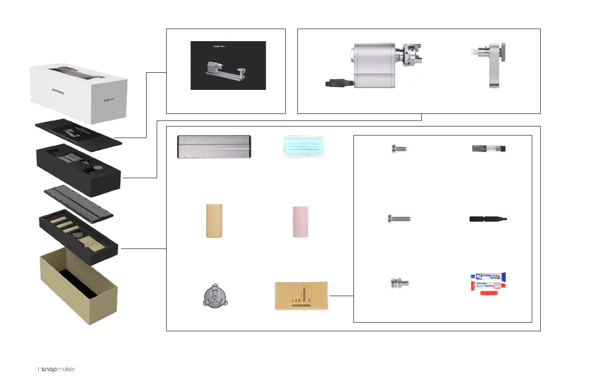 This guide takes Snapmaker 2.0 A350 as a demonstration. All steps and illustrations apply to the assembly and use of the Rotary Module on A250