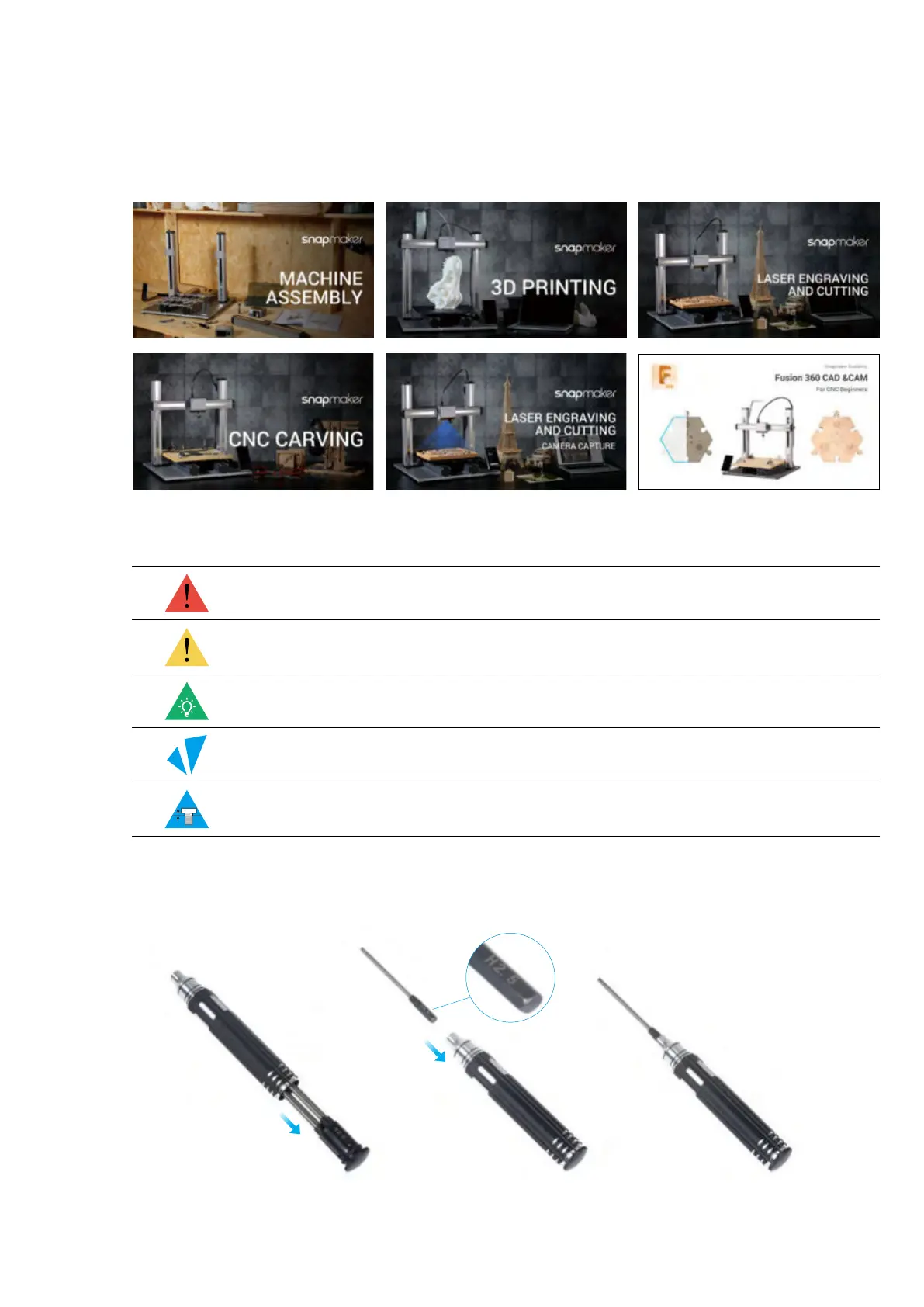 Apart from this Quick Start Guide, we also make video tutorials. Read this guide to finish assembly, and if you
