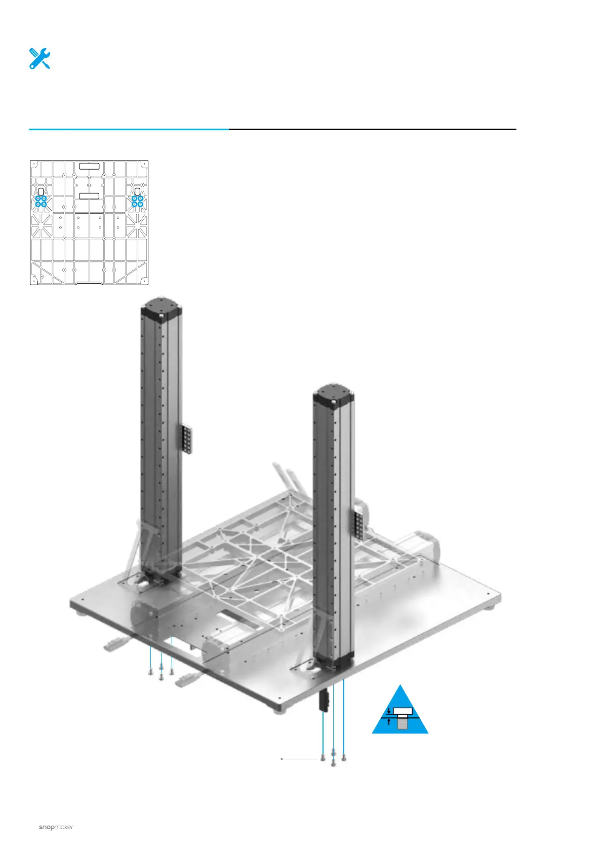 Install the screws to the bottom of the Z axes. Do not tighten the screws