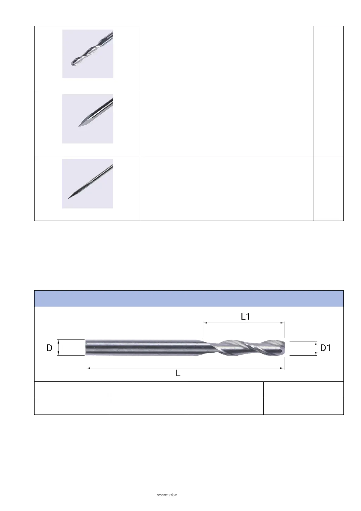 Total Length (L) Cutting Edge Length (L1) Shank Diameter (D) Cutting Diameter (D1)