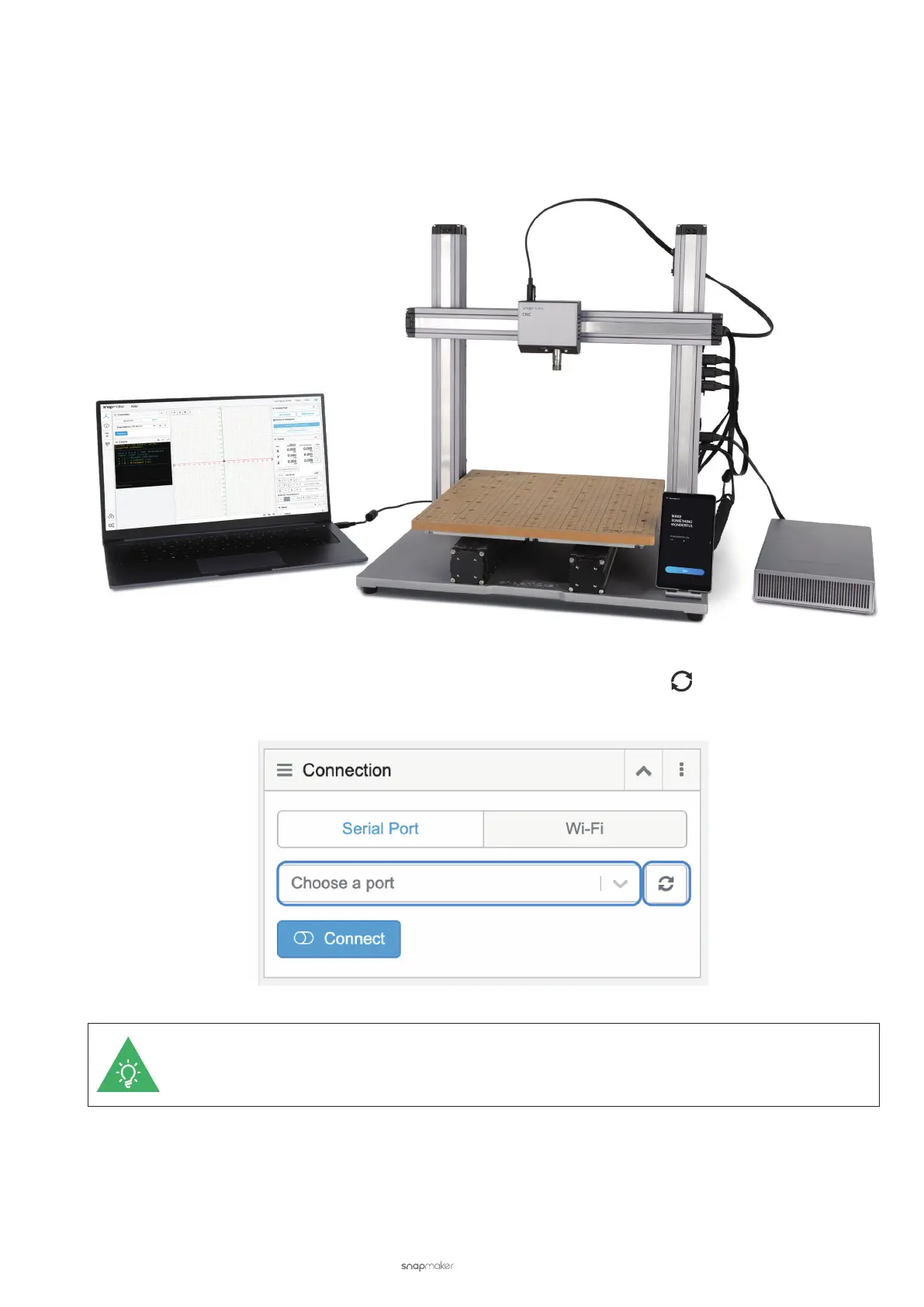 (3) On Luban, click Workspace. In the Connection panel, click Serial Port > Refresh