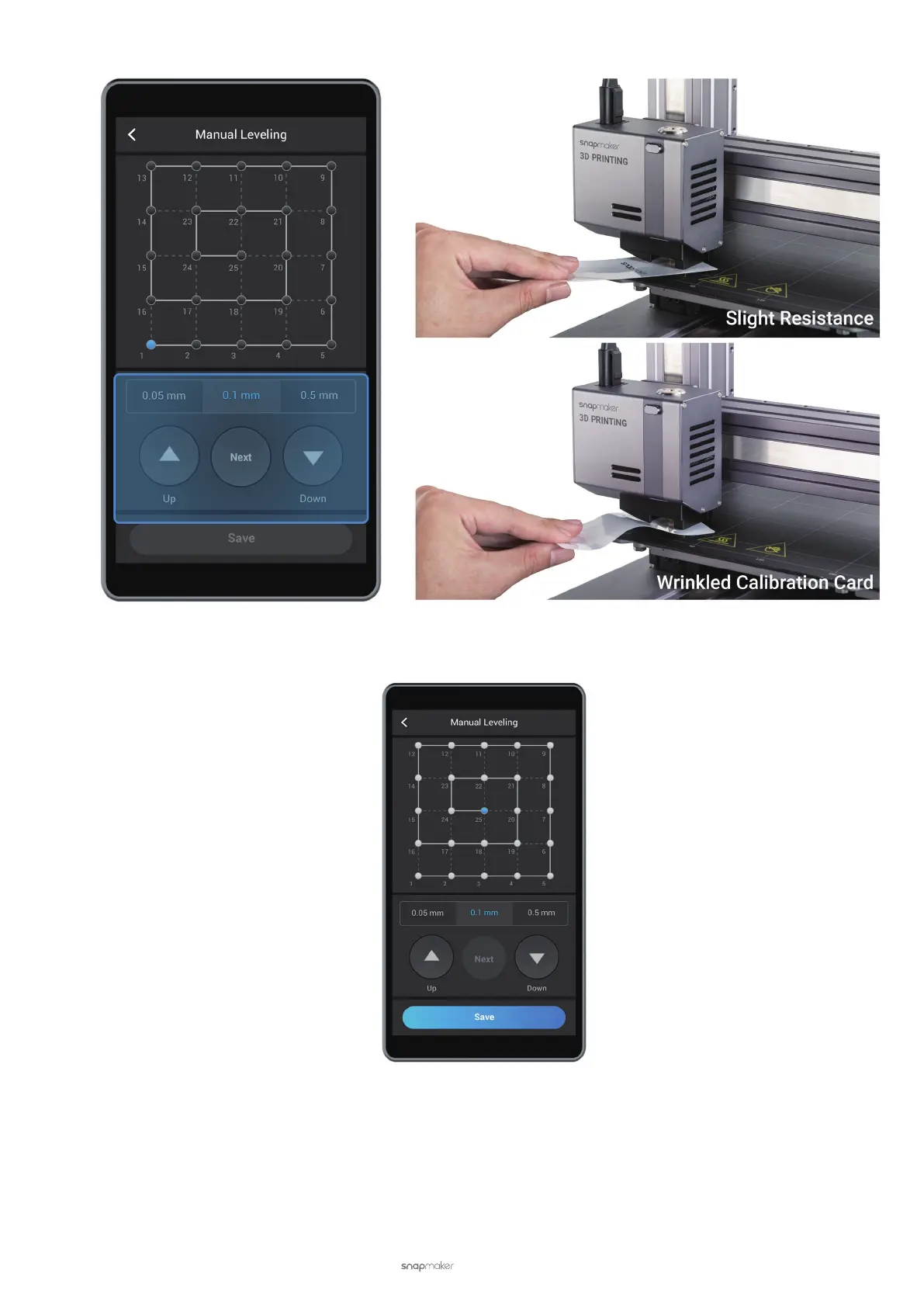 Your 3D printer has three types of calibration grids, made up respectively of 9, 16, or 25 points. At each point, the