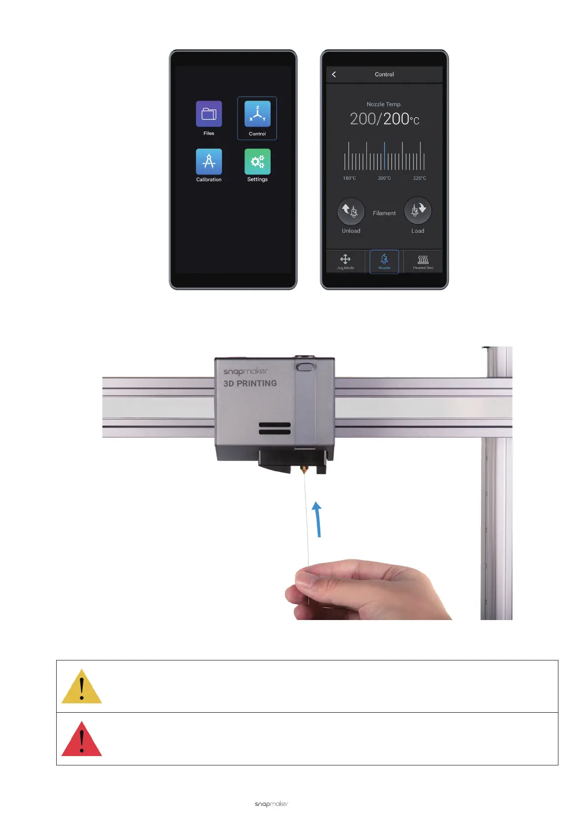 b. Clean the bore. After the nozzle reaches the target temperature, insert a needle, with its diameter smaller than