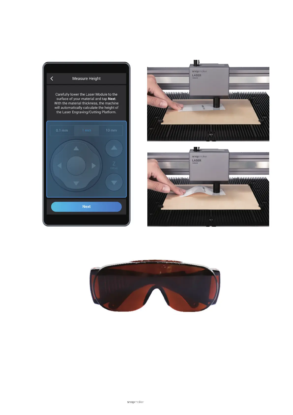 (5) Put the Calibration Card provided or a piece of A4 paper in between the Laser Module and the material. Tap