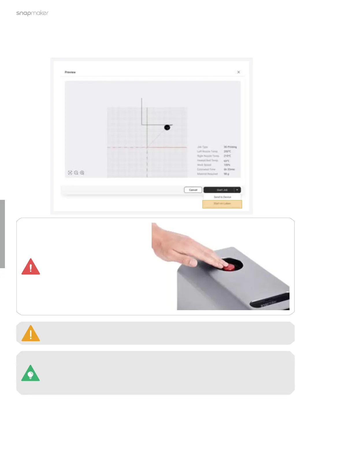 1. In the Preview window, click Start Job > Start on Luban to create your first print! If the Wi-Fi network is
