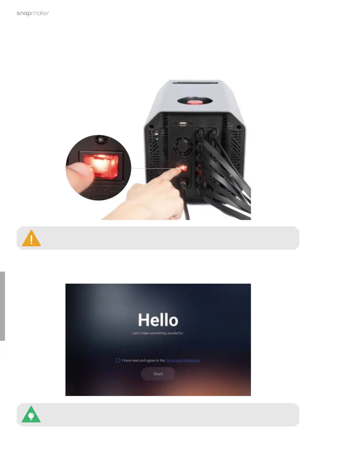 2. Follow the on-screen instructions to set up the machine: Read the Terms and Conditions > Choose the