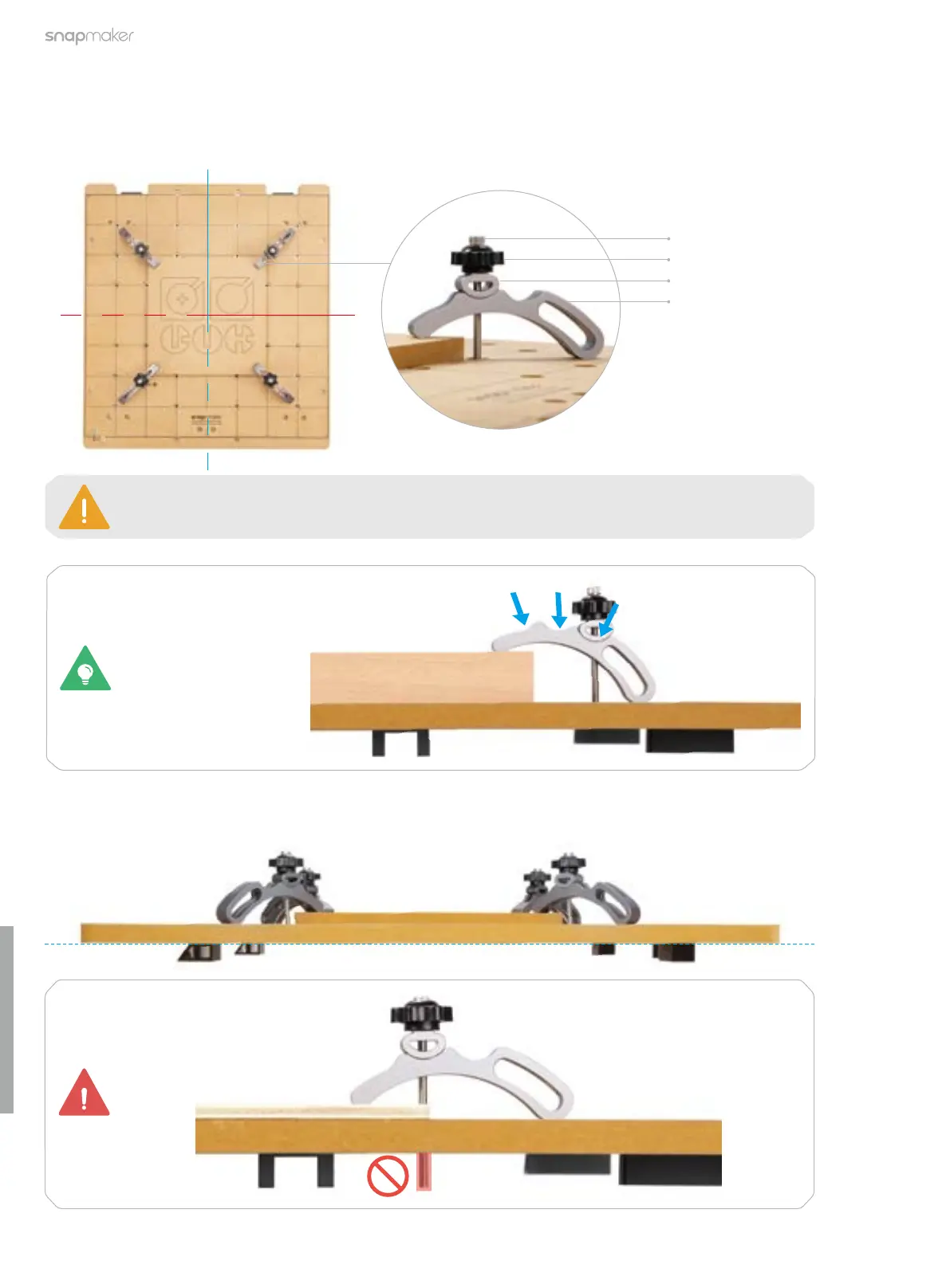 assemble the clamp set as illustrated and fasten the material by tightening the star knobs.