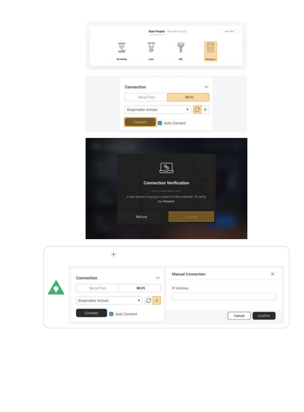 Luban. To check the IP address, tap Settings > About Machine on the Touchscreen.
