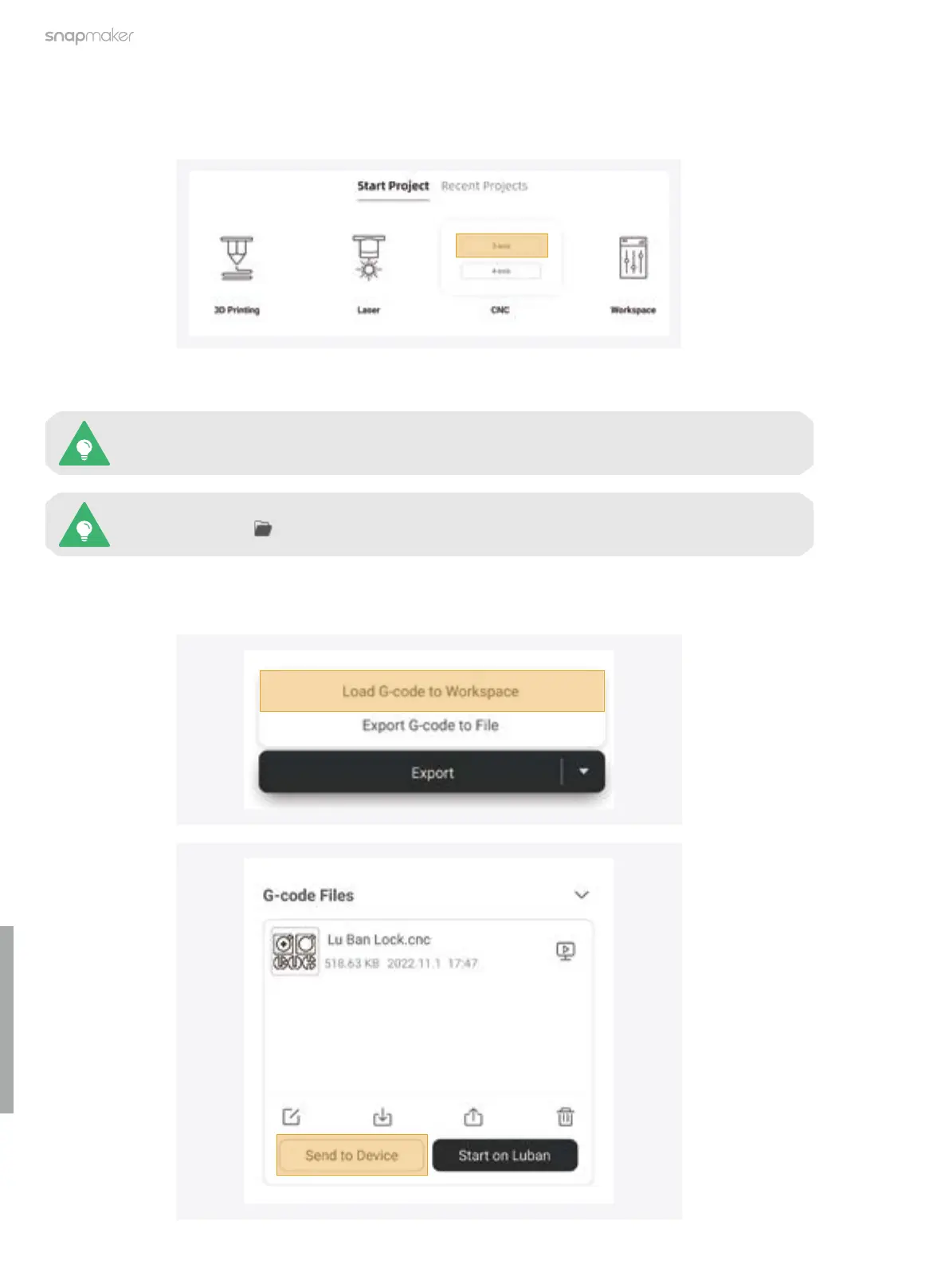 3. Click Export > Load G-code to Workspace, and then click Send to Device on the G-code Files panel to send