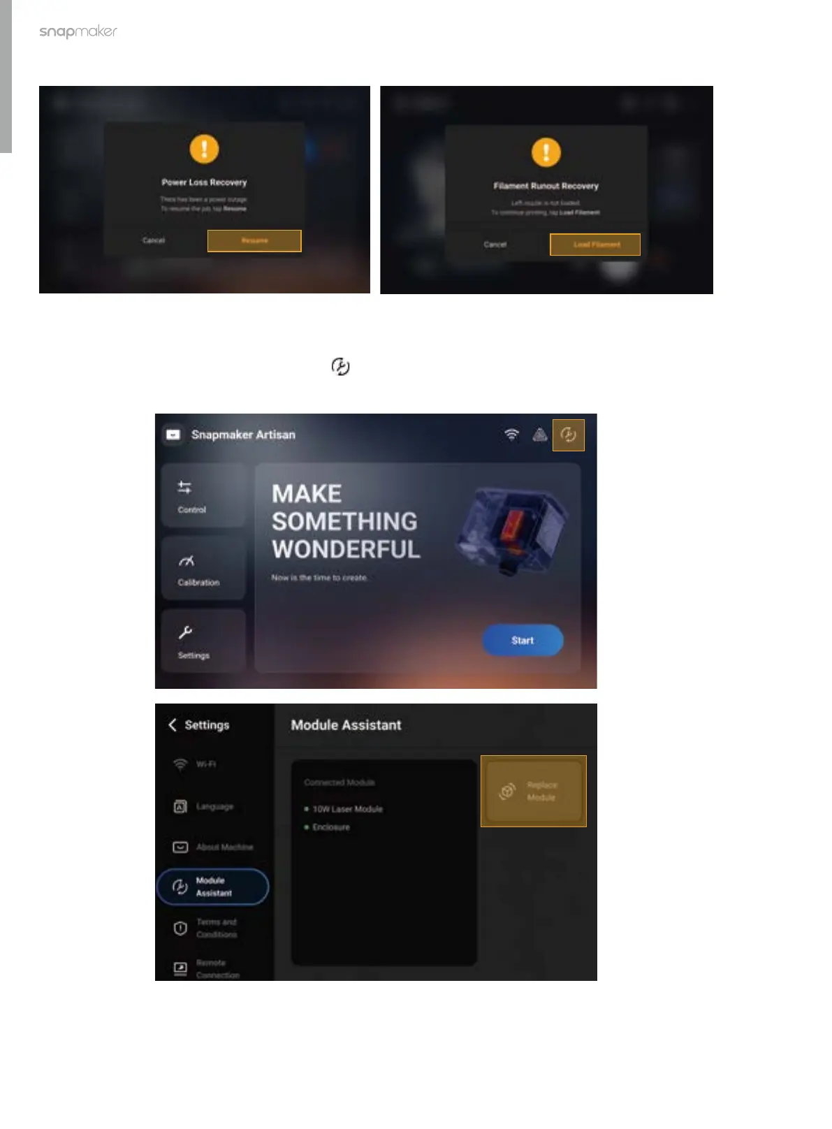 To replace modules, remove or add addons, tap > Replace Module and follow the on-screen instructions to