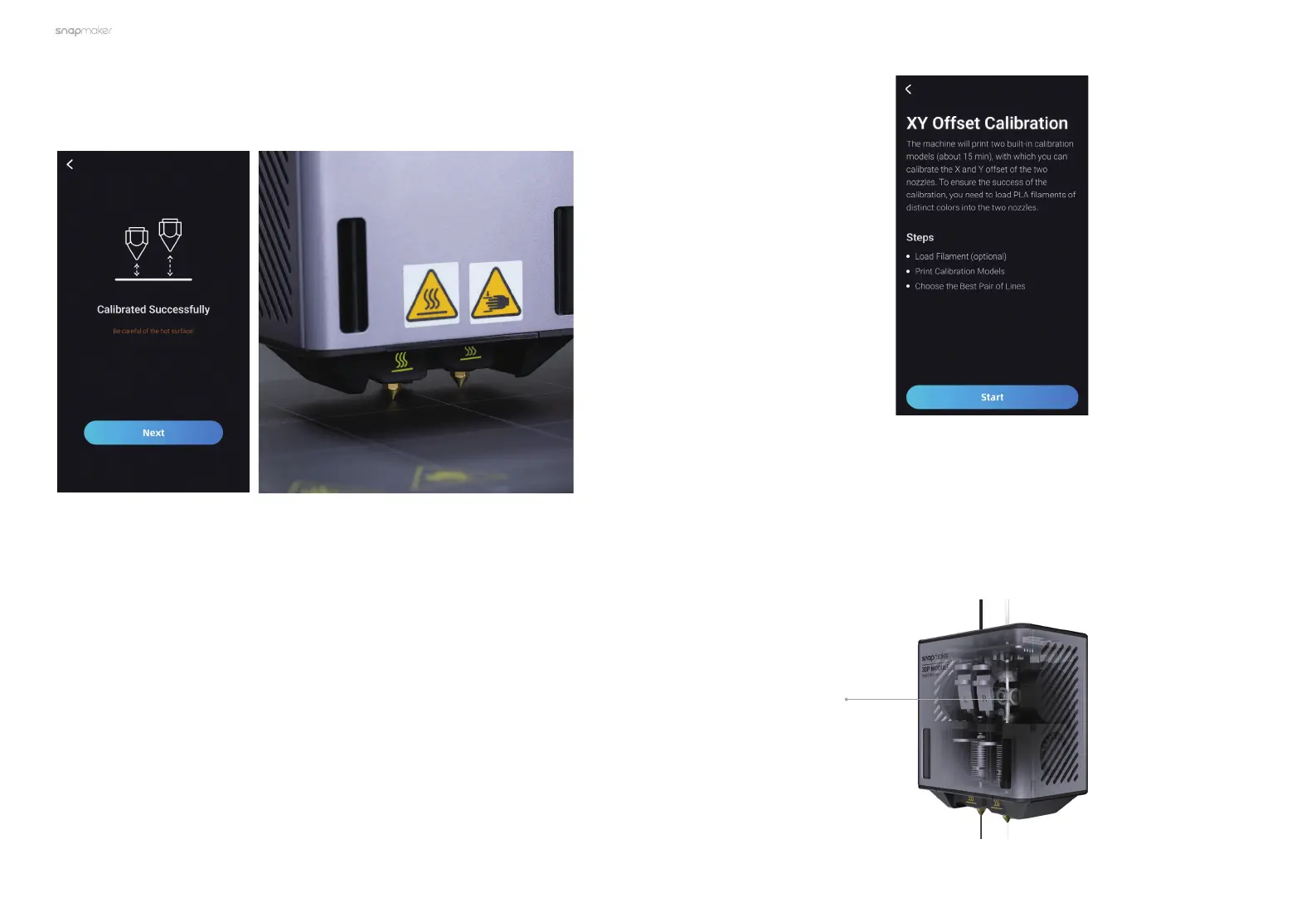 You need to load filaments before calibrating the X and Y offset. Tap Start, and