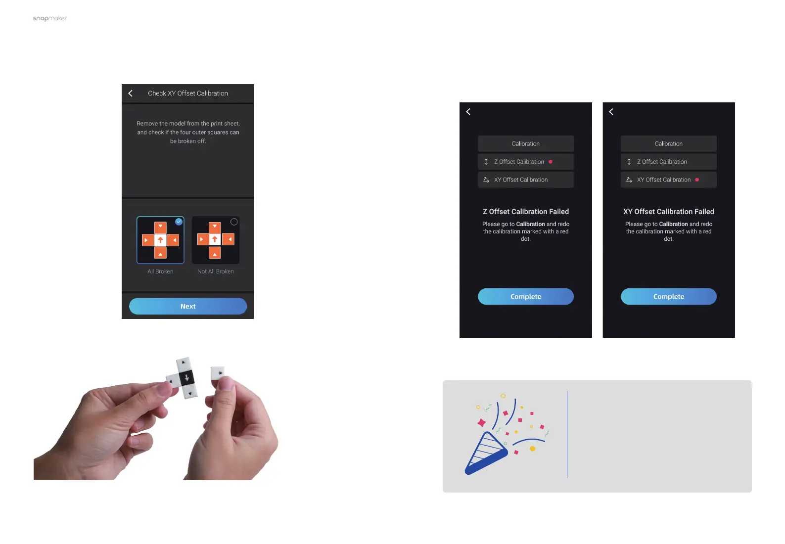 start printing. If not, the calibration failed will be marked with a red dot. Tap
