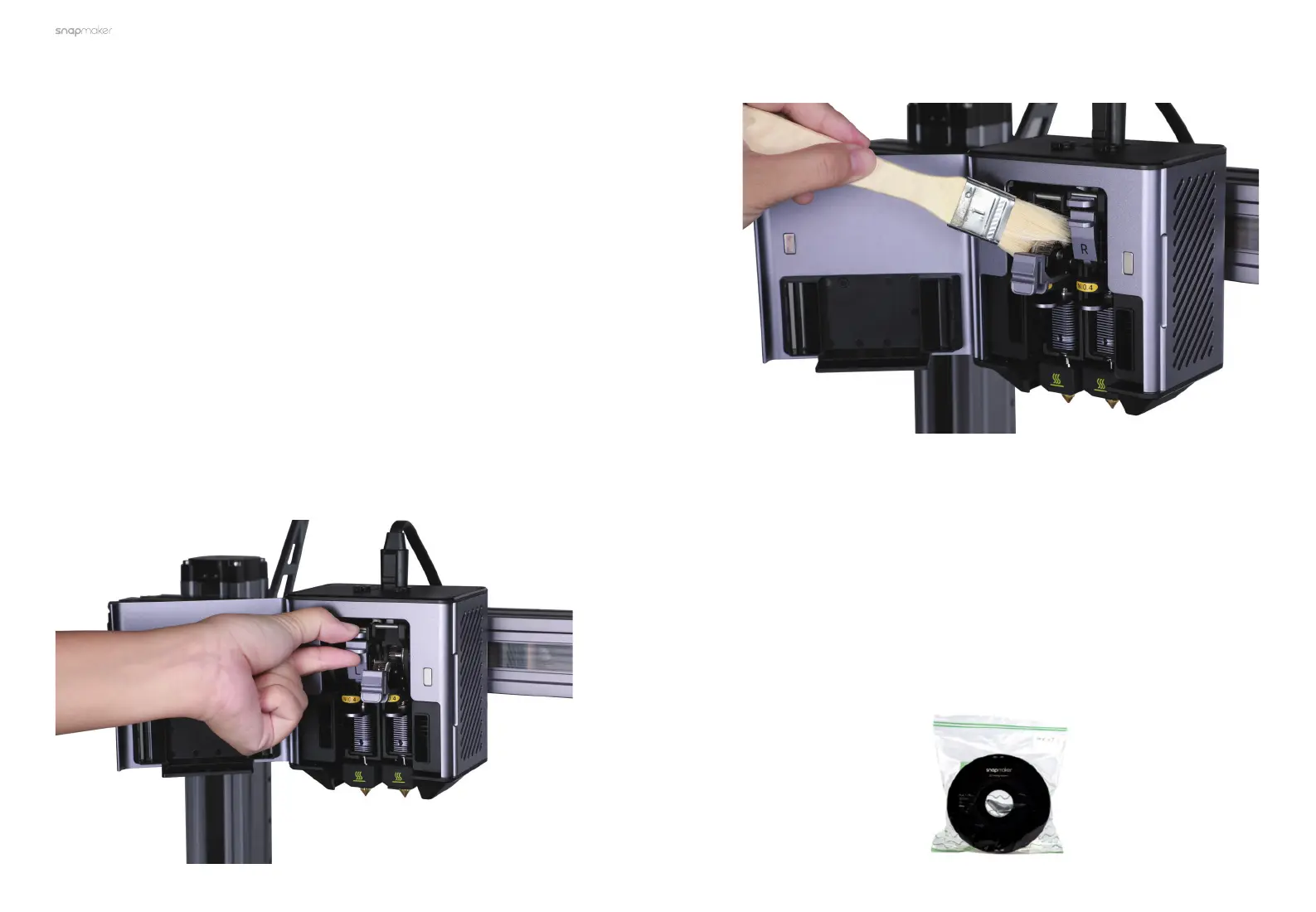 4. Clean the filament shavings from the extruder gears with the banister brush.