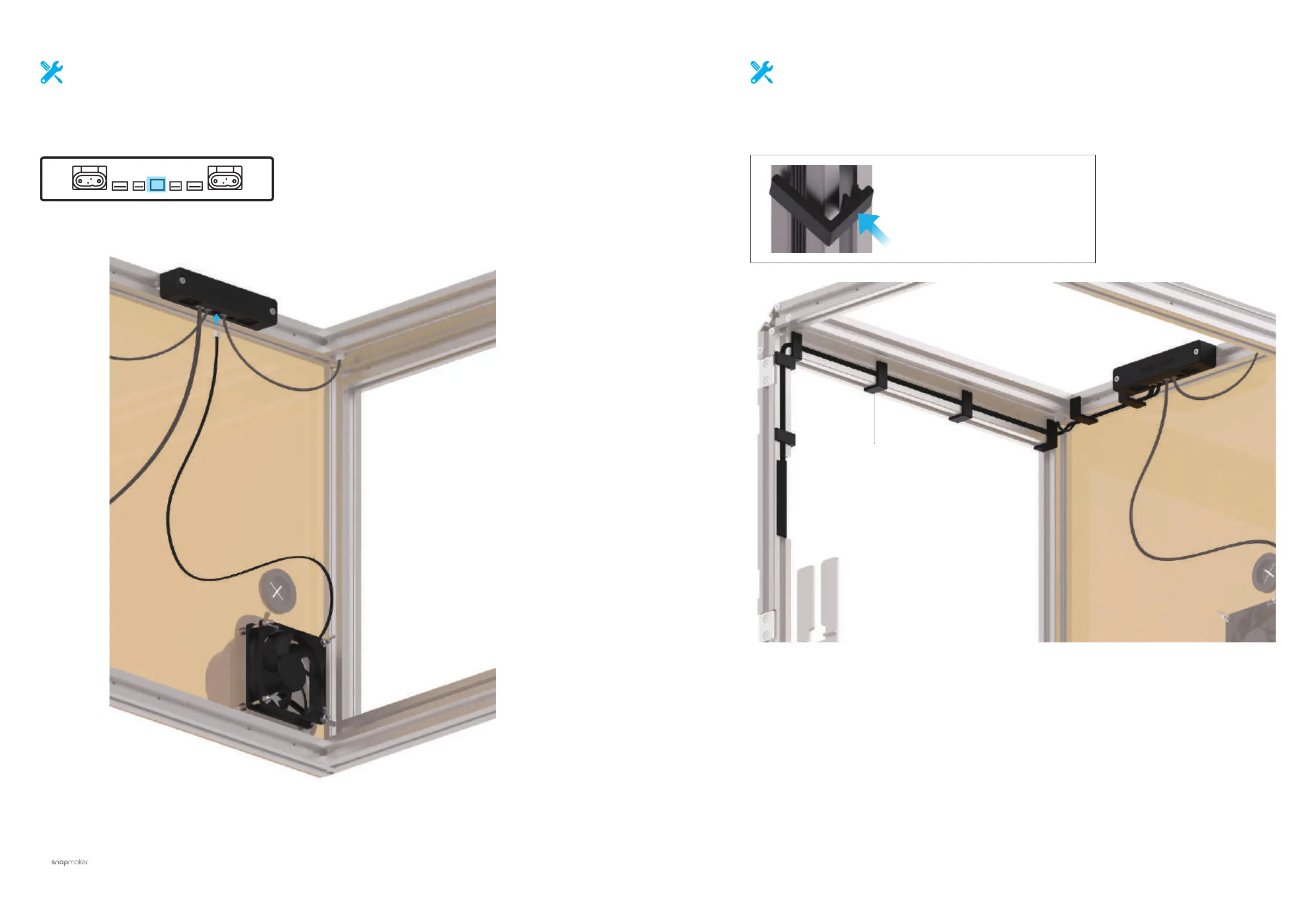 of the beams. Fix the cables with Cable Clips.