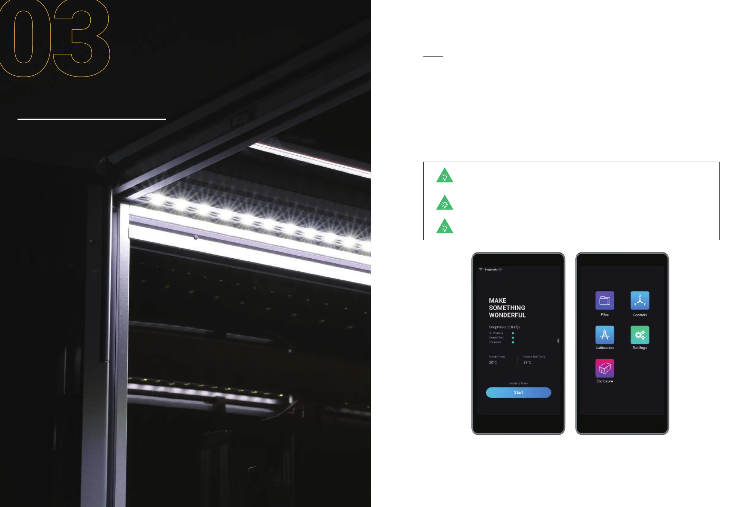 Before starting a 3D printing, laser or CNC process, it’s recommended to switch ON the