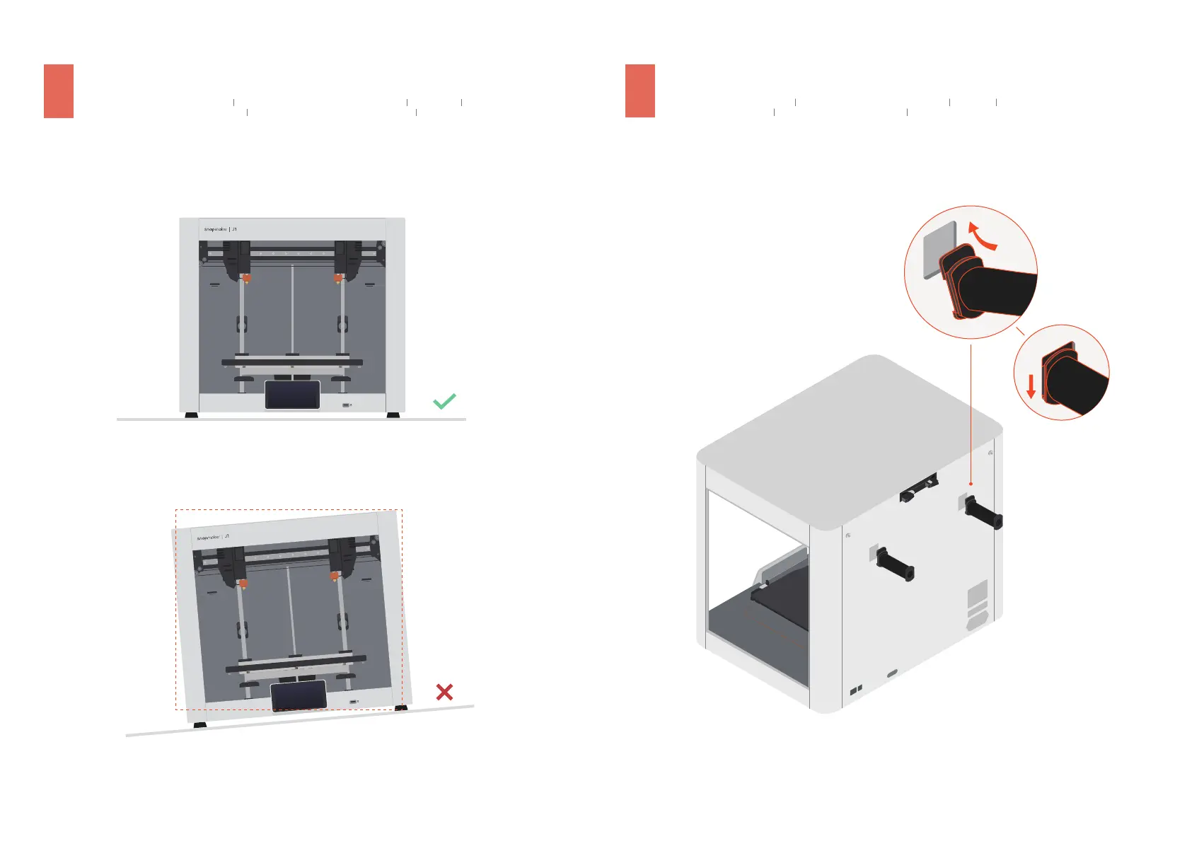 Placer l’imprimante de manière horizontale Posizionare la stampante orizzontalmente プリンター を水 平に 置 きます