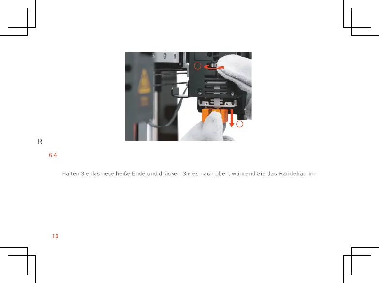 Tenere il nuovo hot end e spingerlo verso l'alto mentre ruotare la rotellina di regolazione in senso orario