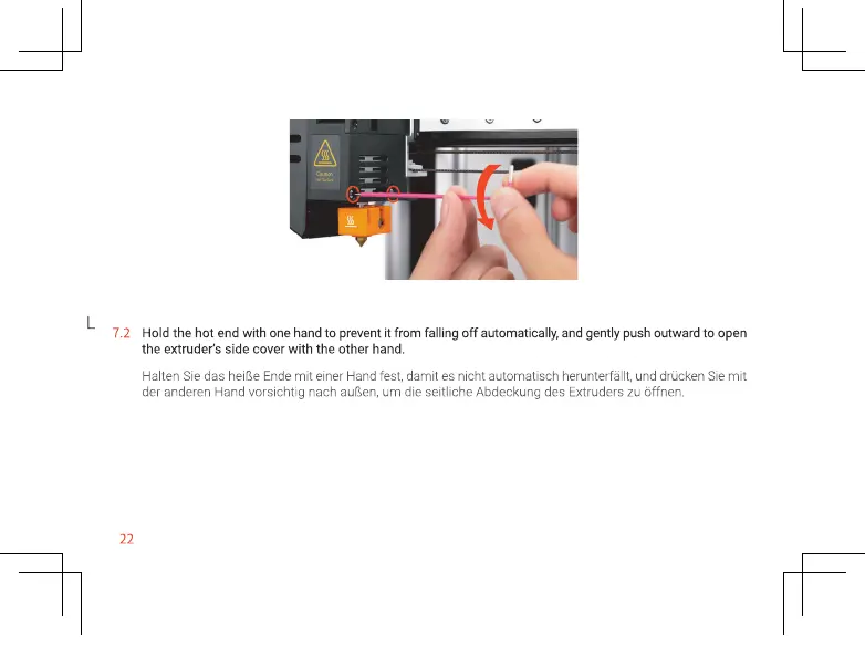 Avec une main, tenez le hotend pour l'empêcher de tomber automatiquement et poussez doucement vers