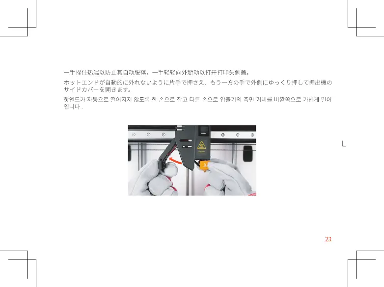 l'esterno per aprire il coperchio laterale dell'estrusore con l'altra mano.
