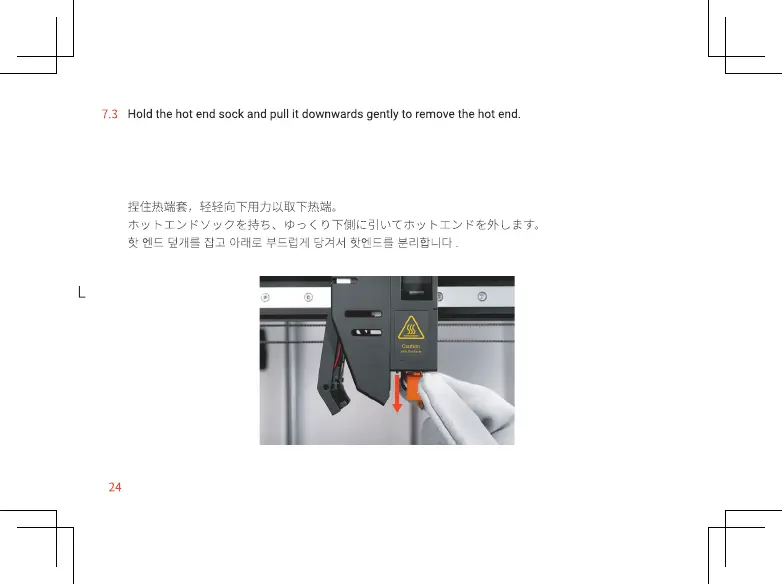 Tenez la chaussette hotend et tirez-la doucement vers le bas pour retirer le hotend.