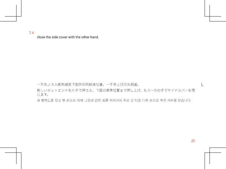 Hold the new hot end and push it upwards to the standard position shown below with one hand, and then