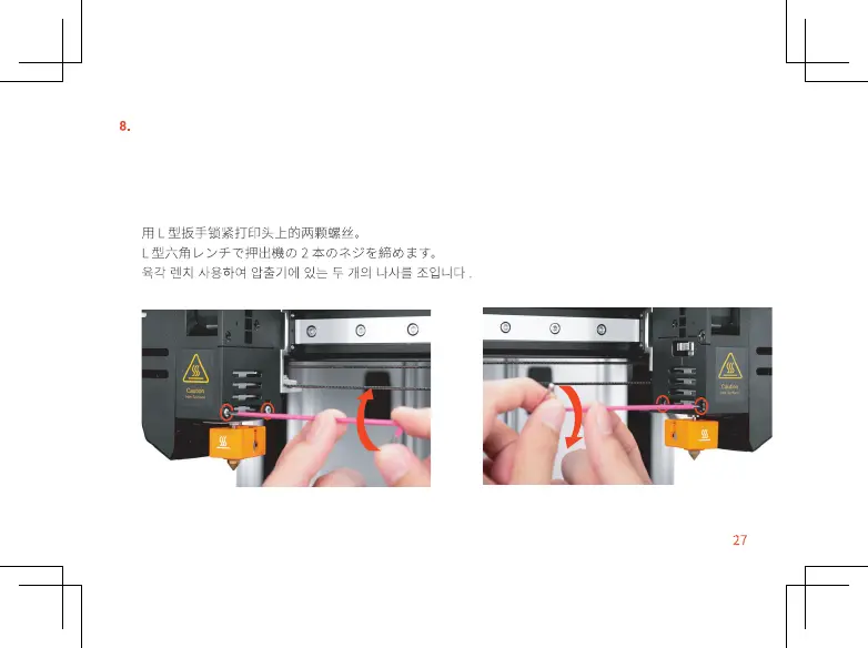 Serrare le due viti sull'estrusore con la chiave esagonale.