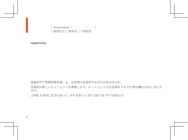 Preparare il nuovo hot end da sostituire. Gli hot end sinistro e destro si applicano rispettivamente all’estrusore