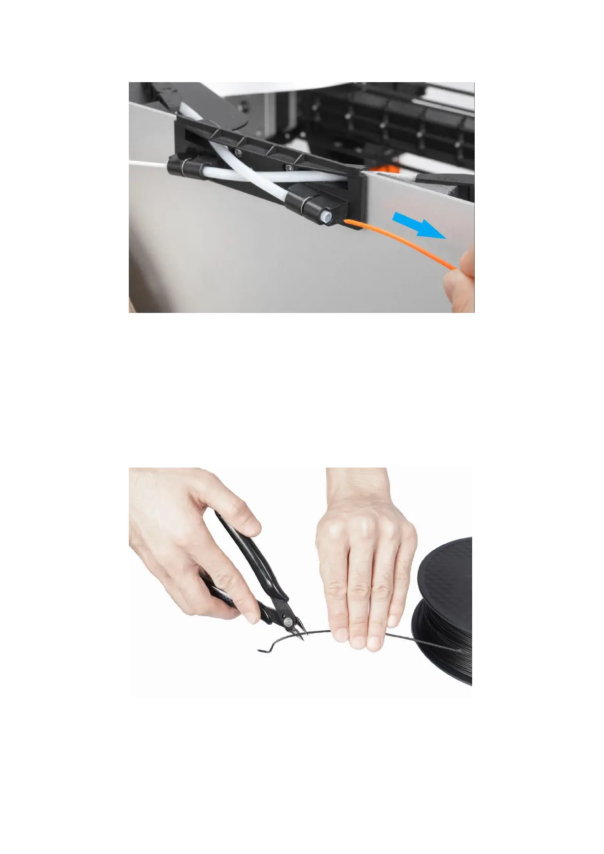 Insert the filament into the filament entry until it protrudes from the other