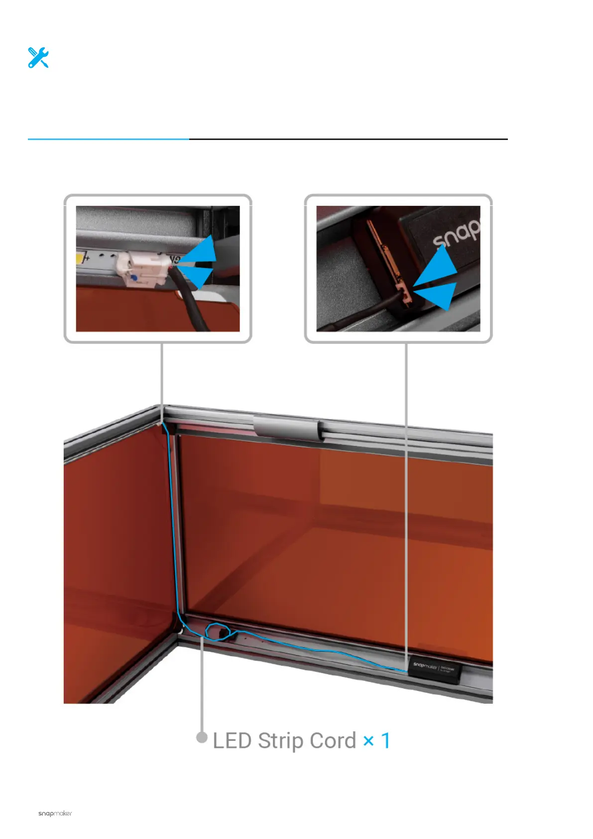 Insert the LED strip cord into the socket of the left LED strip and the 2-pin