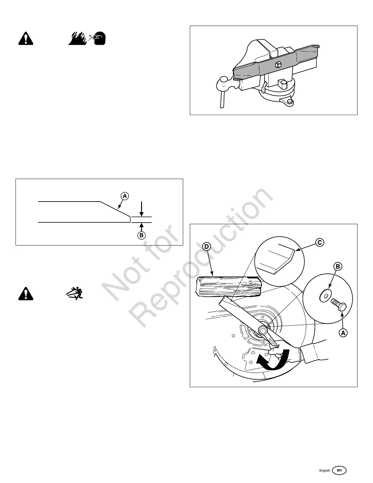 3. Keep the original bevel (A, Figure 42) when grinding. DO
