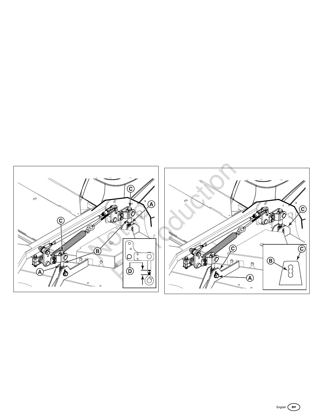 3. Turn the hex adjusters on the deck linkages (C) clockwise