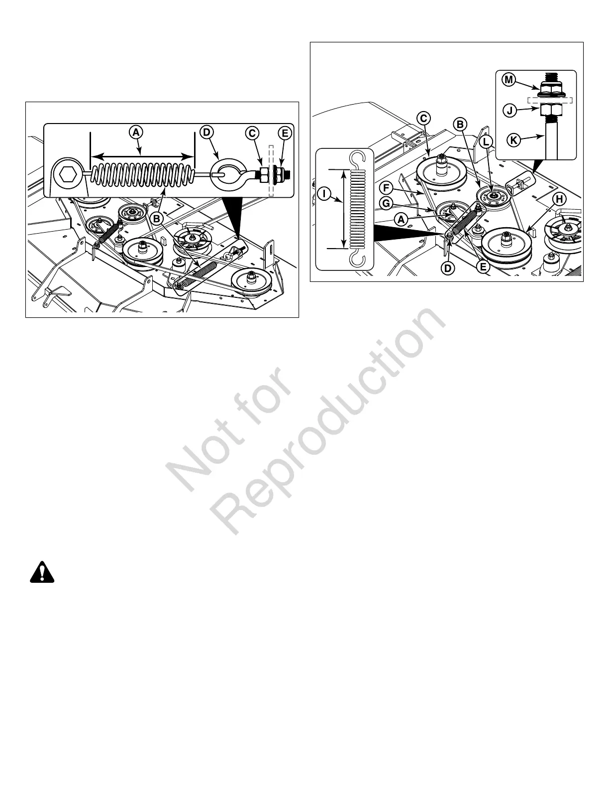 idler arm spring (E) to the mower deck.