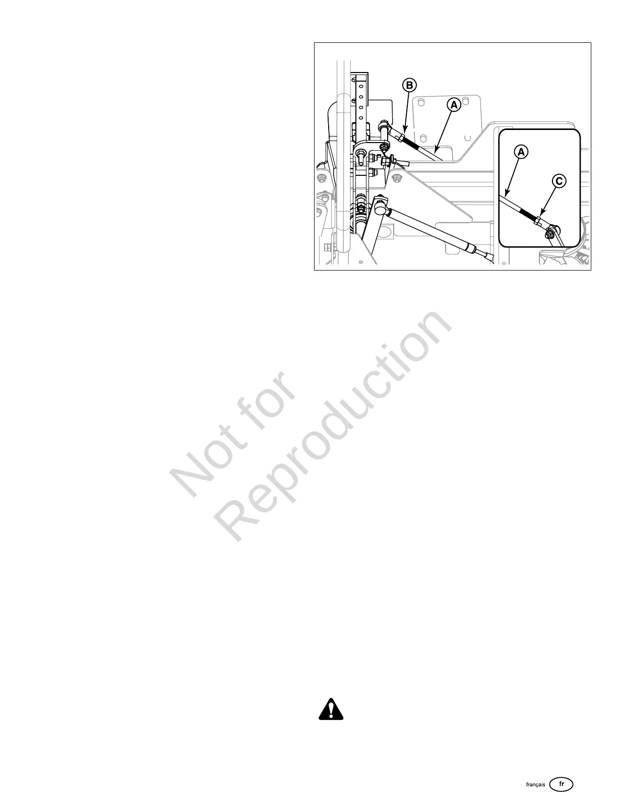 2. Il y a deux écrous (B et C) sur la tige de la tringlerie du