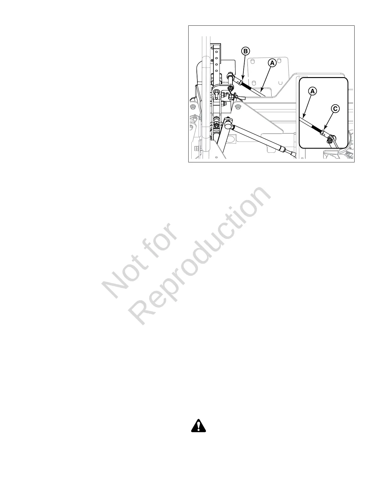 2. Há duas porcas (B e C) na haste de articulação do