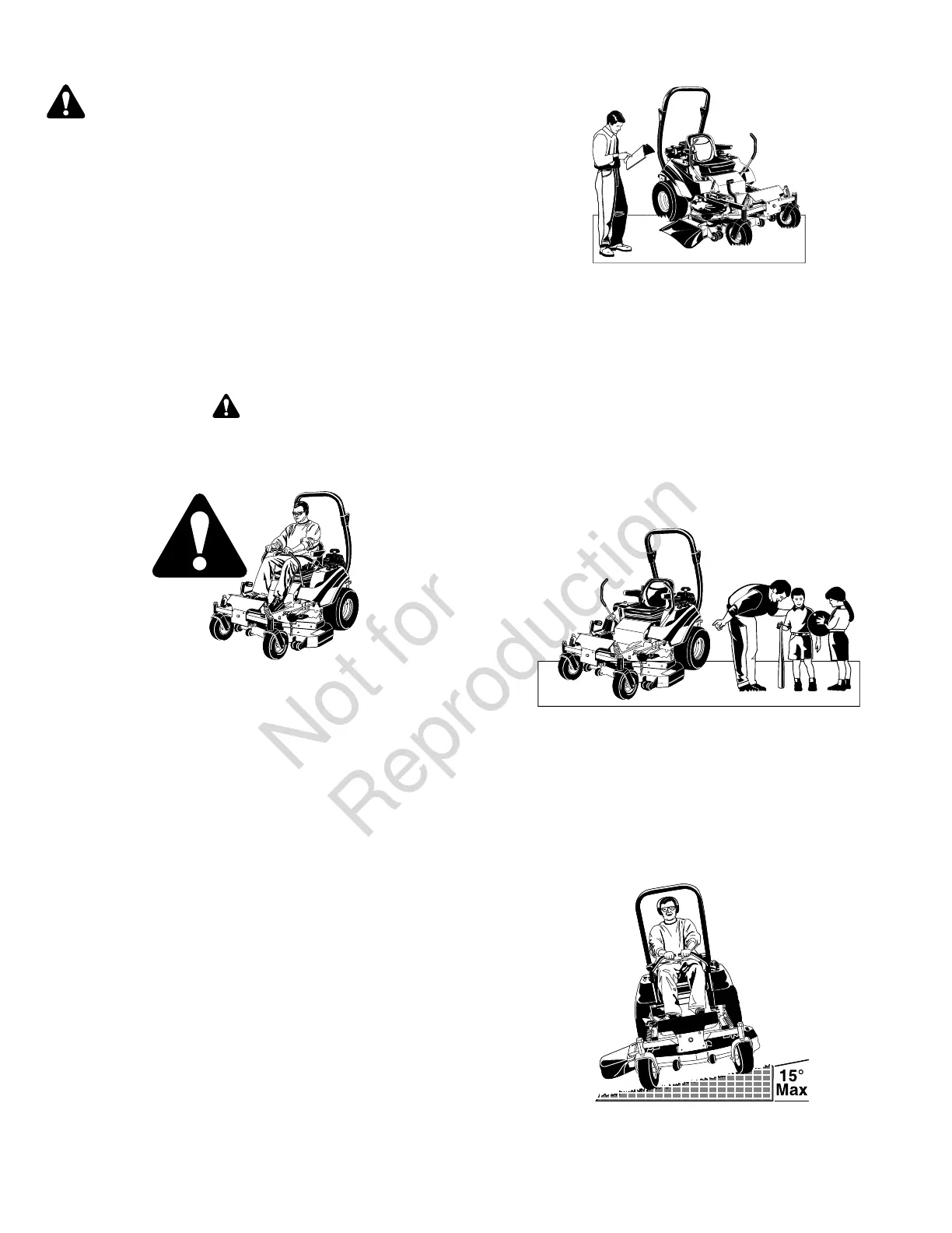 attracted to the unit and mowing activity. Never assume that