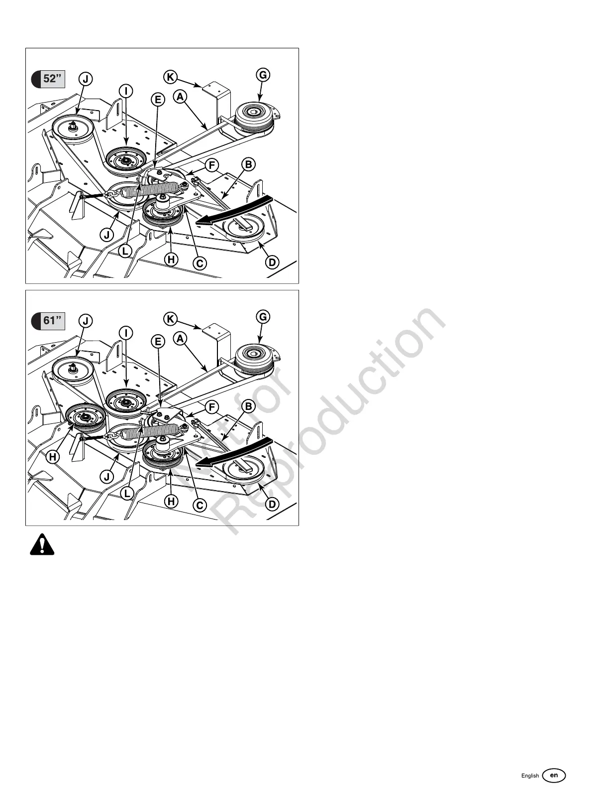 • 52" Mower Decks: Rotate the idler arm clockwise