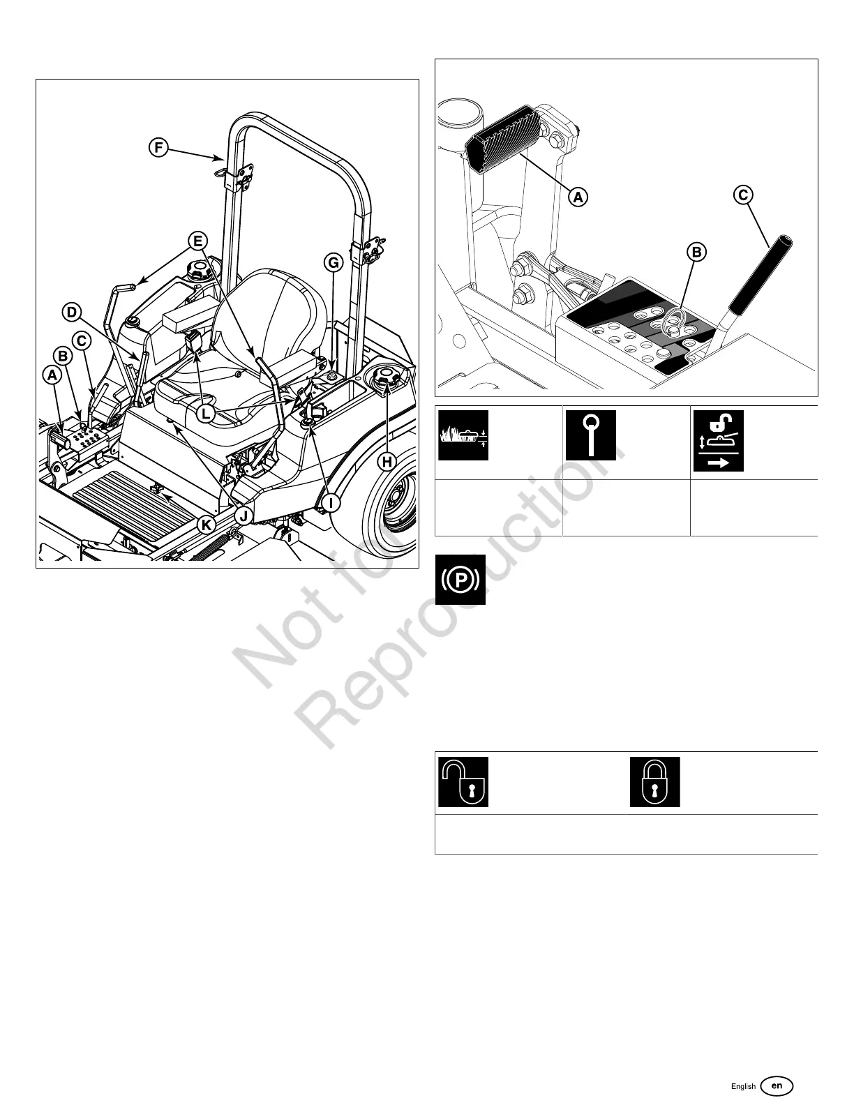 Lift Lock Lever: The deck lift pedal (A, Figure 6), the cutting